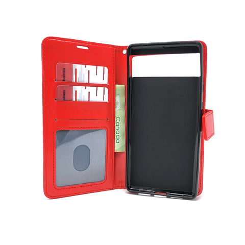 Google Pixel 6 Pro - Magnetic Wallet Card Holder Flip Stand Case Cover with Strap [Pro-Mobile]
