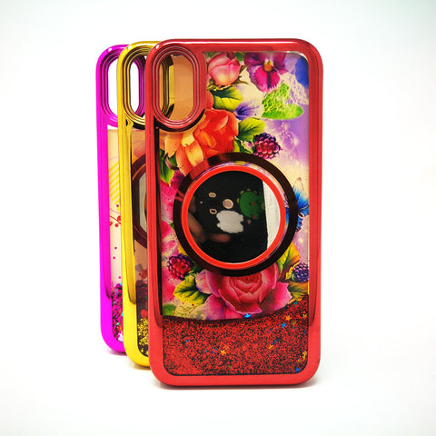 Water Liquid Case with Pop Socket Mirror For Apple iPhone XR.
